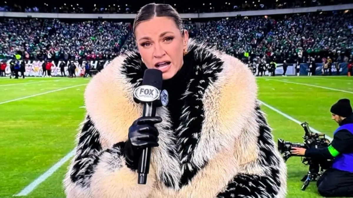 Erin Andrews is currently trending due to her bold fashion choice at the recent NFL playoff game between the Eagles and 49ers. Reports highlight her striking appearance in a fur coat, which garnered significant attention during the high-profile sports event. This unusual outfit choice not only caught the eyes of the audience but also led to her being described in vivid terms, such as being likened to an emu.