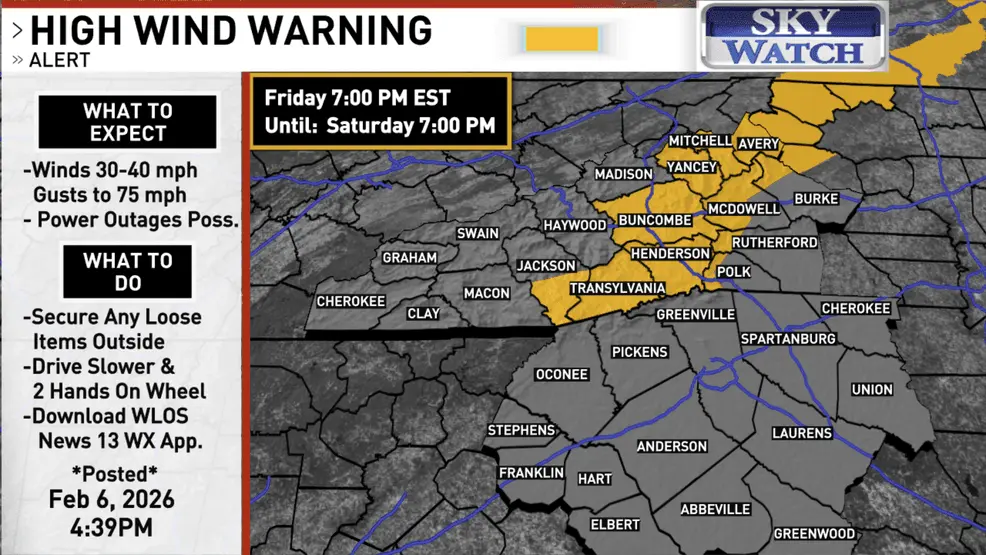 WLOS – High Wind Warning in place for parts of western North Carolina: Here’s what to know