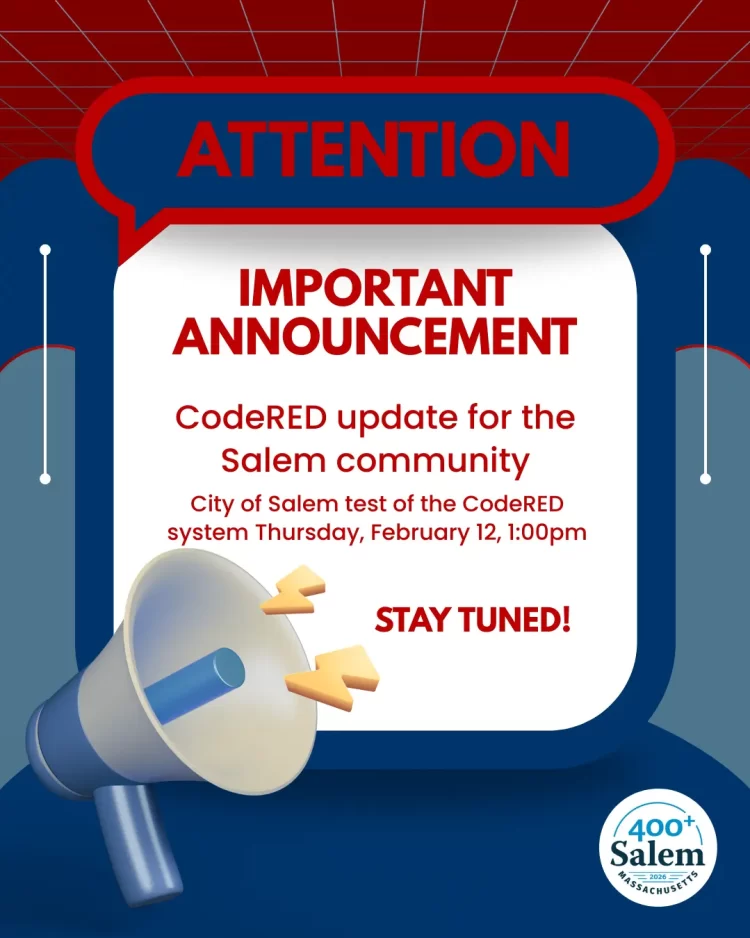 Salem, MA (.gov) – Upcoming Test of the CodeRED system – scheduled for Thursday, February 12, 1:00pm